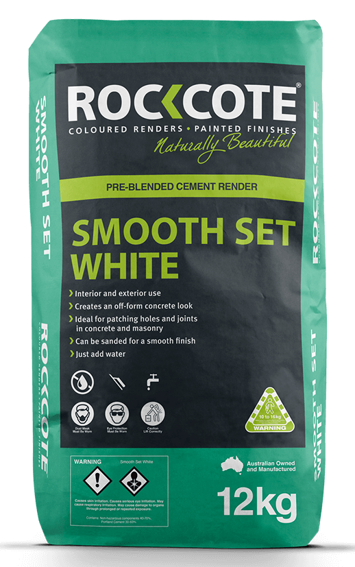 ROCKCOTE Smooth Set is designed for patching holes, form joints and minor imperfections in concrete or masonry walls.